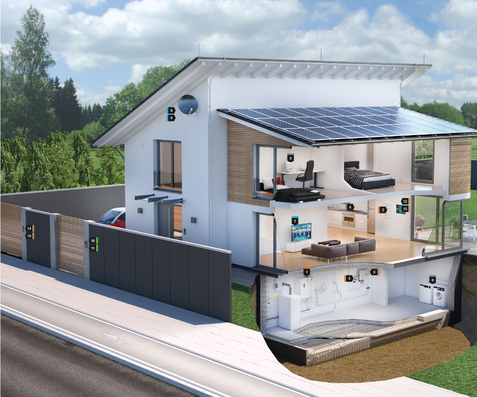 Bina Otomasyonlu Müstakil Ev – Yıldırım Yakalama Sistemi VAR Solar (Fotovoltaik) Sistem var