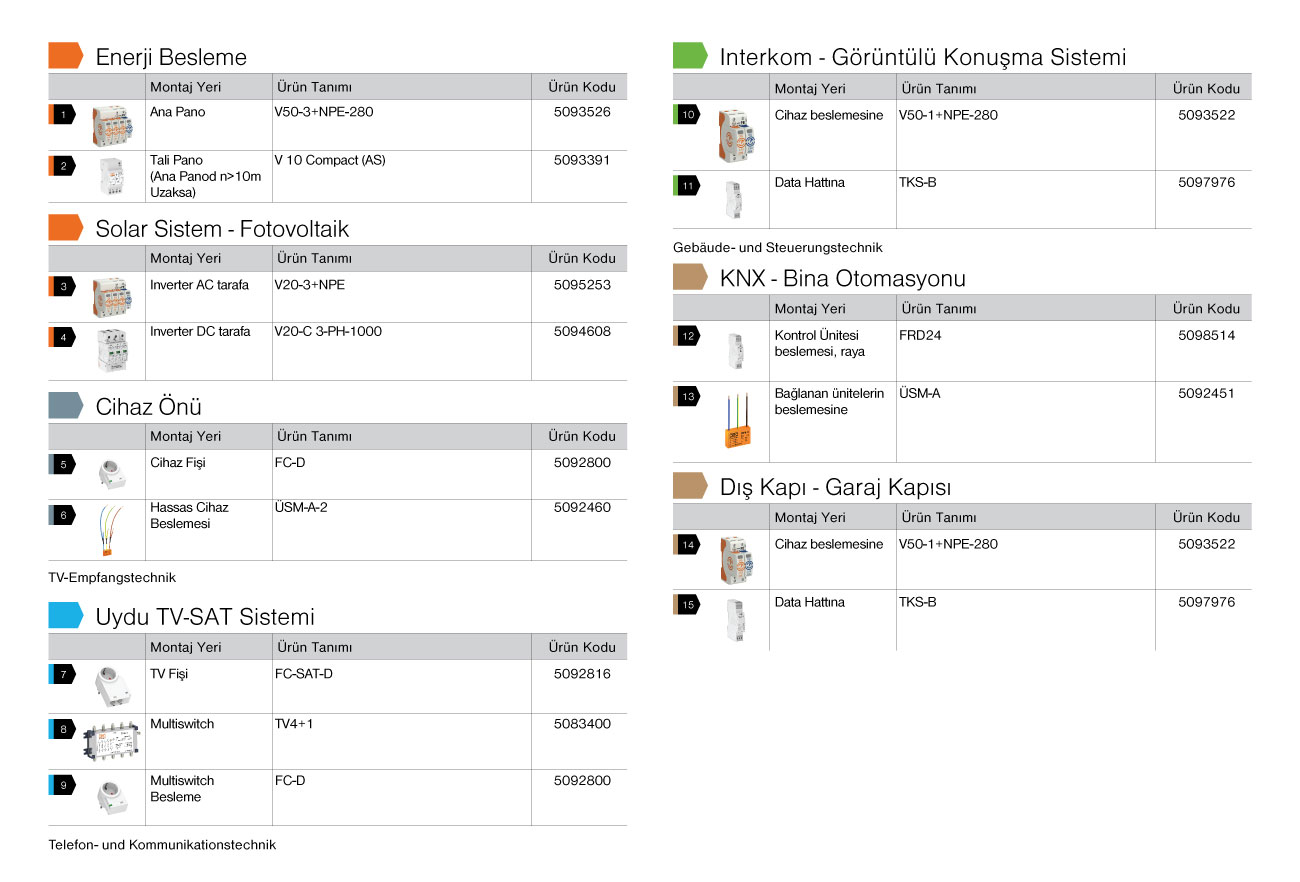 Korunması gereken sistemler: Enerji hattı (Ana Pano – Tali Pano), Elektrikle çalışan tüm cihazlar, Telefon hattı, Kablo veya SAT TV hattı, Data hattı, Server hattı, KNX-Bina otomasyon sistemi, Isıtma Sistemi, Interkom sistemi, Yangın İkaz Anons Sistemi, CCTV sistemi, Dış aydınlatma armatürleri korunmalıdır.