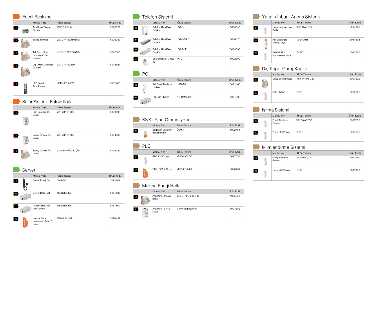 Korunması gereken sistemler: Enerji hattı (Ana Pano – Tali Pano), Elektrikle çalışan tüm cihazlar, Makina Enerji ve PLC hatları, Telefon hattı, Fotovoltaik (Solar) sistem (AC-DC), Kablo veya SAT TV hattı, Data hattı, Server hattı, KNX-Bina otomasyon sistemi, Isıtma Sistemi, Interkom sistemi, Yangın İkaz Anons Sistemi, CCTV sistemi, Personel takip sistemi, Dış aydınlatma armatürleri korunmalıdır.